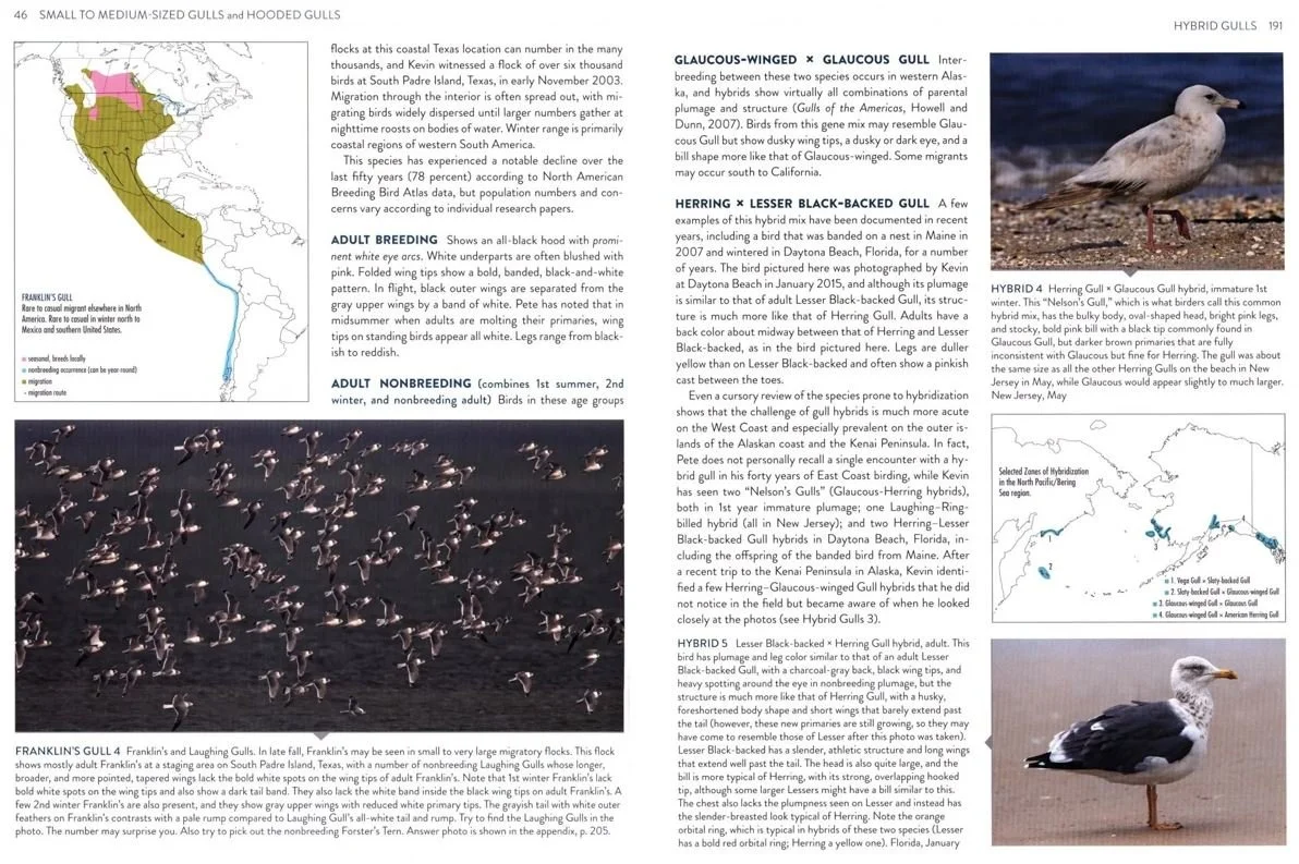 Dunne and Karlson’s Gulls Simplified is the answer to our prayers… sort of. Conveniently sized, inexpensive, attractive and really well designed, it sorts gulls into four major groups (yes, the modern genus-level taxonomy is used) before discussing each species in turn. The text is concise, non-technical and friendly, often humorous. It summarises the key aspects of appearance and form, in addition to status, distribution and the appearance of immatures.