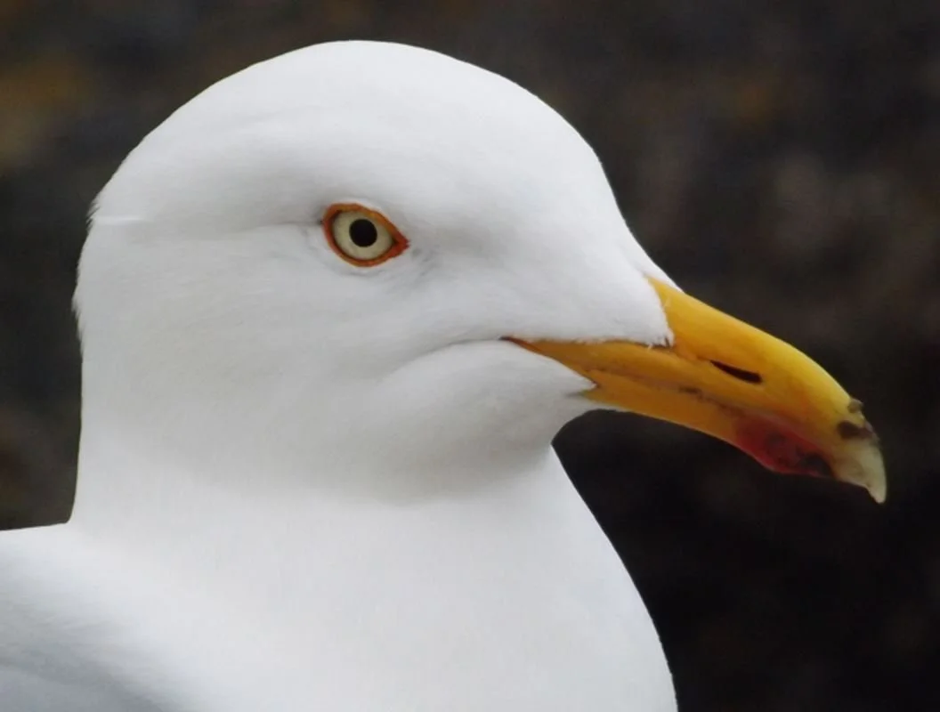 Caption: Herring gull again. So many details to pay attention to: note the orbital ring, the gonydeal bulge near the tip of the lower jaw and its red spot, the extent of the gape line, and the shape of the bill tip. Image: Darren Naish.